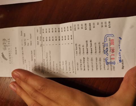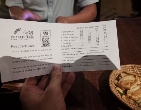 旁边是姐妹庙和皇家公园,晚上高峰期去的等了挺久的,人很多。同行的一个小姐姐是国外留学的博士生英语杠杠的。服务费下来不便宜。菜的味道怎么说呢?值得一试,很奇怪的感觉哈哈。但是不难吃。晚上去最好,吃完...旁边是姐妹庙和皇家公园,晚上高峰期去的等了挺久的,人很多。同行的一个小姐姐是国外留学的博士生英语杠杠的。服务费下来不便宜。菜的味道怎么说呢?值得一试,很奇怪的感觉哈哈。但是不难吃。晚上去最好,吃完了酒吧街走起。三个人算$80人民币560所以不便宜。请记住。柬埔寨消费是用美元!比新加坡还贵!当然了有名的就那么几个。总得来说物超所值。可能气氛有时候能促进就餐。加上交谈很愉快。很不错的慢生活三个人平均177一个人。