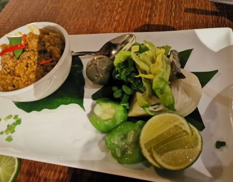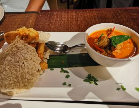 在暹粒算是做的比较正宗的柬餐,无论摆盘和口味大部分菜还是国人所能接受的。餐厅整个风格柬埔寨式,木房子高脚楼。室内灯光环境比较接近西餐形式!