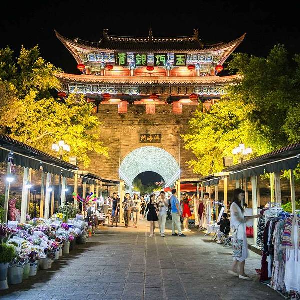 金骆驼 华灯初上的大理古城,显得如此静谧美好,哪怕一次偶遇,便可以让你沉醉在大理古城夜景里#点评召集令#洱海在大理古城东门,所以大理古城的东门也叫洱海门,不过由于地势和水资源的变化,洱海面积萎缩了,所以洱海门距离洱海有一定距离,大概有4—6公里左右。