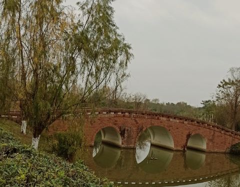 ...步的地方,冬天步道两边很多芦苇,水域不大有几座石桥,景色一般但空气很好,看到很多地方围起来在修