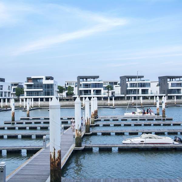 香山帆船中心是这两年才开发的一个新兴高端场所,目前建设还不是很完善,像别墅区、超五星酒店、会所等等还没有建起来。但这并不影响此地的繁华,旁边一排接着一排的高端写字楼就说明了此地的地段价值。虽然还没有完全建设起来,但此地依然是目前亚洲最大的游艇码头,港内停满了大大小小的帆船和游艇,看上去非常高端。