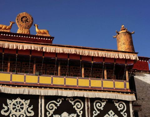 这种带有明显藏式特征的藏式建筑,在藏区独特寺院,可以说处处即是,深深地吸引着手摇转经筒的人们,前往心中的圣地,为自己企求“功德”。