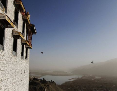 ...国道的路,让我们看到了山头上的夏珠林寺,询问才知道这座寺庙的名字,以及寺庙中神奇的吉祥天母肉身