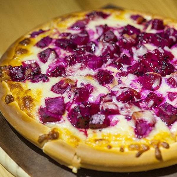 - 【水果披萨】看到果肉是什么了吗绝对不是暗黑料理,是好吃的紫色火龙果。