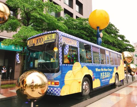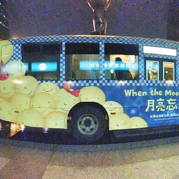 ...亮忘记了主题的公车,由信义房屋赞助,可以在那里拍照留念,车厢里有播放着音乐,让你置身童话故事里在台北101对面,是几米对我月亮忘记了主题的公车,由信义房屋赞助,可以在那里拍照留念,车厢里有播放着音乐,让你置身童话故事里