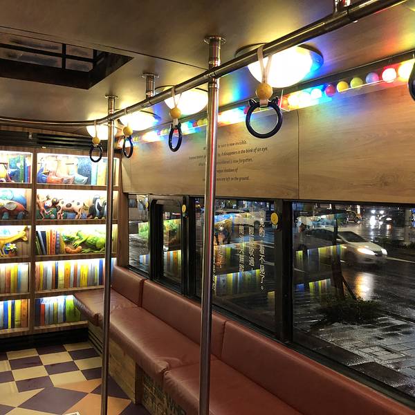 这里会满足你的少女心,小熊司机,月亮公车的绘本在闪耀。离台北101很近,不妨来看看离台北101很近,不妨来看看。这里会满足你的少女心,小熊司机,月亮公车的绘本在闪耀。在这里坐一坐,看一看,拍拍照,坐上这样一辆月亮公车,开在夜晚的台北