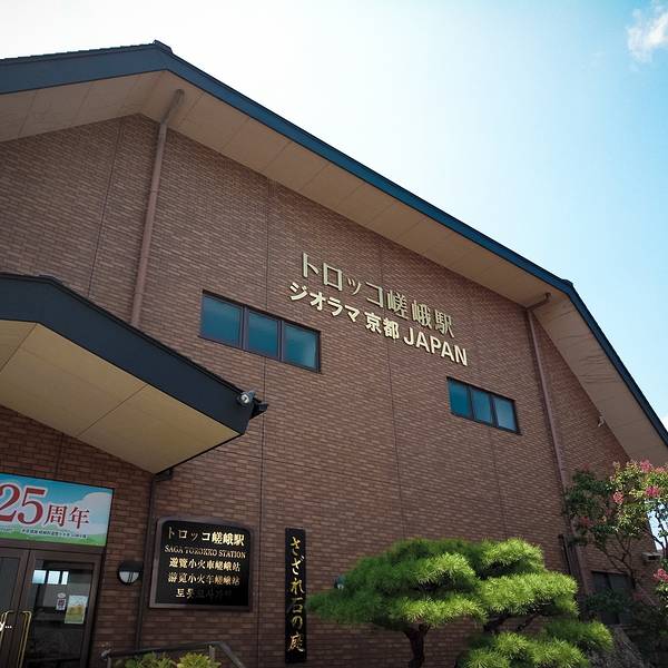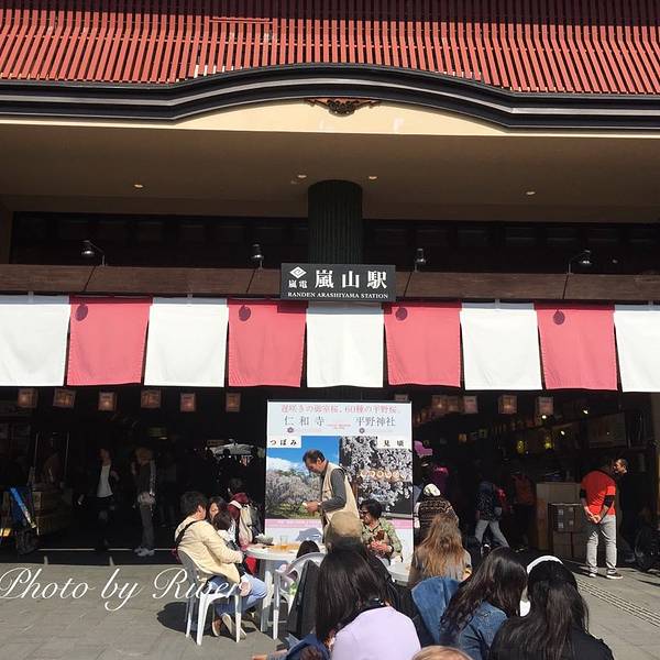 卖...从商店街过来,穿过这条小路就是岚山小火车的车站啦上山的小火车站就在这里,隔壁就是JR的岚山站。买好小火车票和漂流的船票。