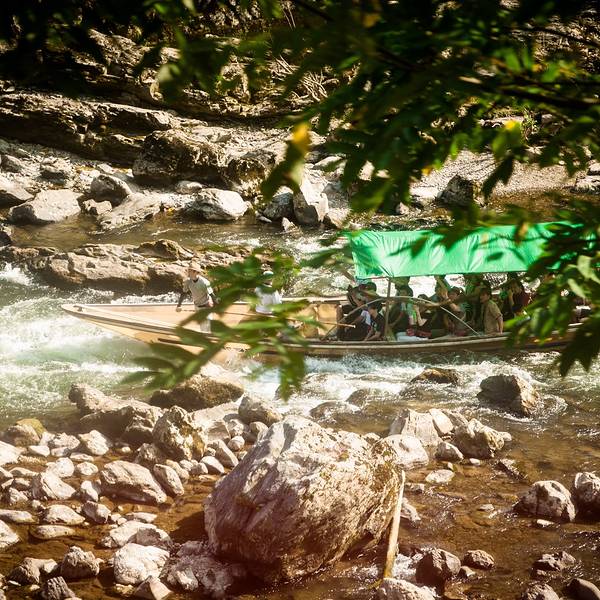 乘船漂流下川,不费力气就能全情体验“两岸晓烟枫竹秀 一江碧水绕轻舟”小火车到达龟冈站,距离漂流的码头还有一段路需要换成BUS摆渡过去,有了买票姐姐的讲解和指引图想走错还真挺难的。