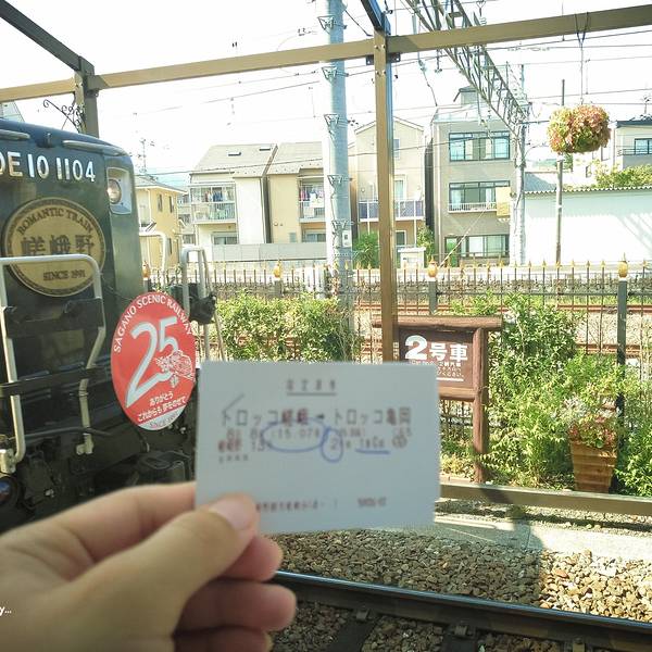 这样从上到下从下到上都可以尽揽美景。看看表还不到2点从商店街过来,穿过这条小路就是岚山小火车的车站啦上山的小火车站就在这里,隔壁就是JR的岚山站。买好小火车票和漂流的船票。
