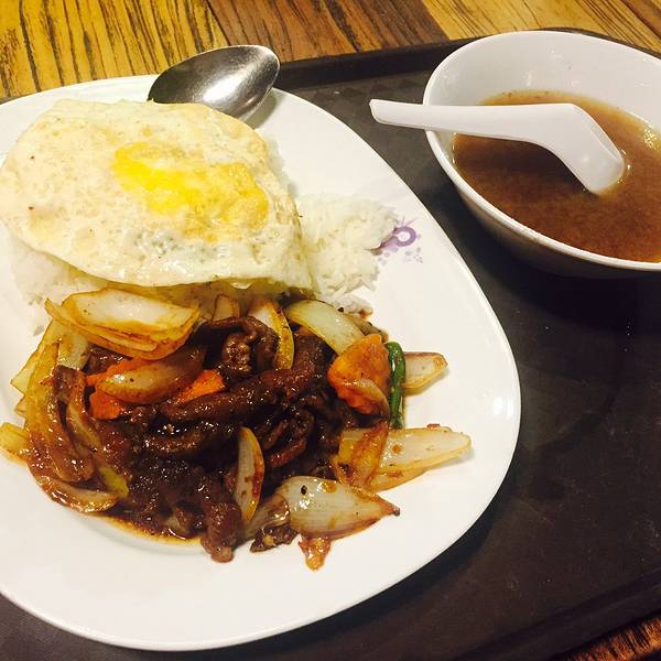 第二天玩好环球影城之后我和巧巧姐从圣淘沙岛走回怡丰城,最后选择在大食代解决晚餐~大食代里有各种各样的新加坡美食,叻沙、海南鸡饭什么的都有。因为我好几天没吃中式饭菜了,所以我点的是一份黑椒牛柳饭。附赠了一份牛肉汤,牛肉味很浓郁还带着一股药味。总体来说味道中规中矩啦~ 这一份6新元。 推荐指数:三星