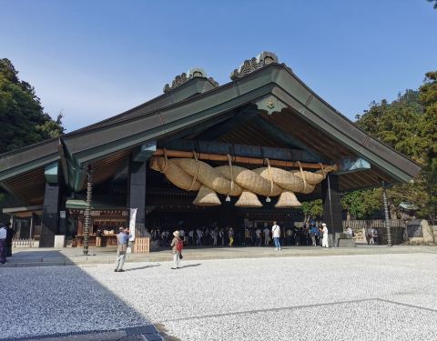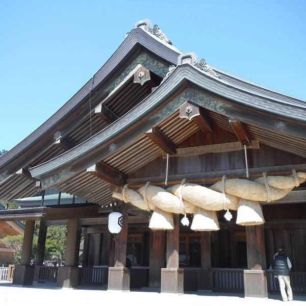 出云大社以姻缘神明而闻名,所以人们纷纷来此合掌祈愿,希望获得一段美满的姻缘,祈愿参拜者络绎不绝这是一座因供奉着结缘之神大国主神而知名的神社。正殿按照日本最古老的神社风格建造,被指定为国宝。阴历10月全国各地的神聚集在出云,日本只把这个地方叫做“神在月”,就是有神的月份,这里茂密森林充满着生命...这是一座因供奉着结缘之神大国主神而知名的神社。正殿按照日本最古老的神社风格建造,被指定为国宝。阴历10月全国各地的神聚集在出云,日本只把这个地方叫做“神在月”,就是有神的月份,这里茂密森林充满着生命的气息,走在松树林立的参道,仿佛能感受到神秘的神明所在。出云大社以姻缘神明而闻名,所以人们纷纷来此合掌祈愿,希望获得一段美满的姻缘,祈愿参拜者络绎不绝。 出云大社是日本最古老的神社之一,有着很长的神道和超大的结缘绳,这结缘绳在神乐殿,长13米,重约5吨,居日本之首,是当之无愧的出云大社的象征,它是手工编织的,每6-7年需更新一次。 展开