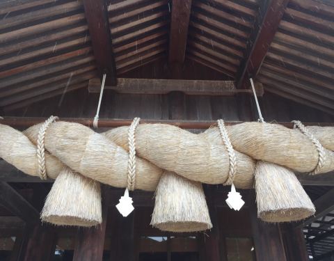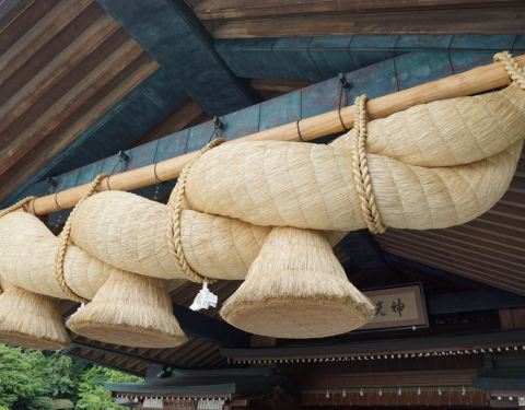 一个古老的神社,大绳确实很粗。从出云站坐公交或城市电车都可以到达。