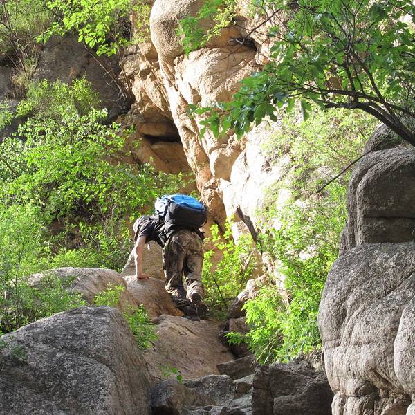我第一次去是在2009年的8月1日。那时的水泉沟和现在略有不同,很多地方还没有搭桥,全靠手爬,淌水,最后还要做皮筏子过一个水塘,颇有一些野趣。
