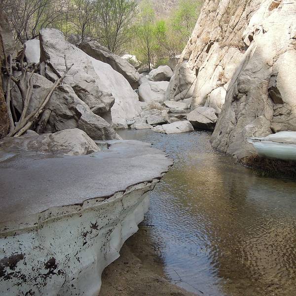 这里真是纳凉的好地方,现在到处都是春暖花开,满眼绿色,可是在这里,还是有一些阴坡,依稀可见的冰...这里真是纳凉的好地方,现在到处都是春暖花开,满眼绿色,可是在这里,还是有一些阴坡,依稀可见的冰没有融化。