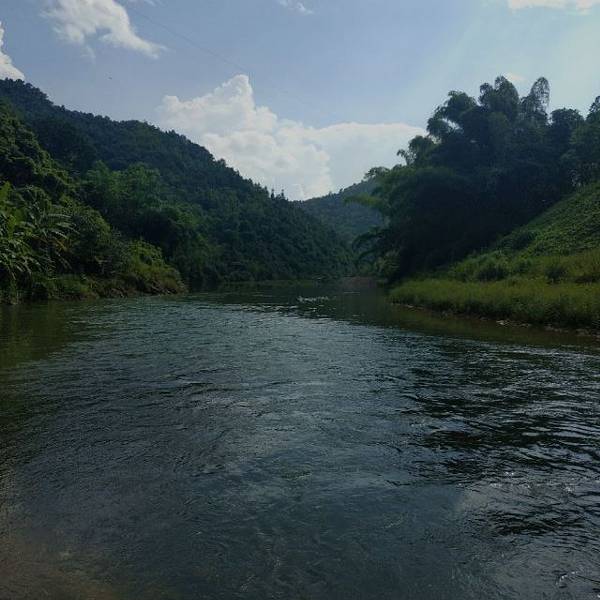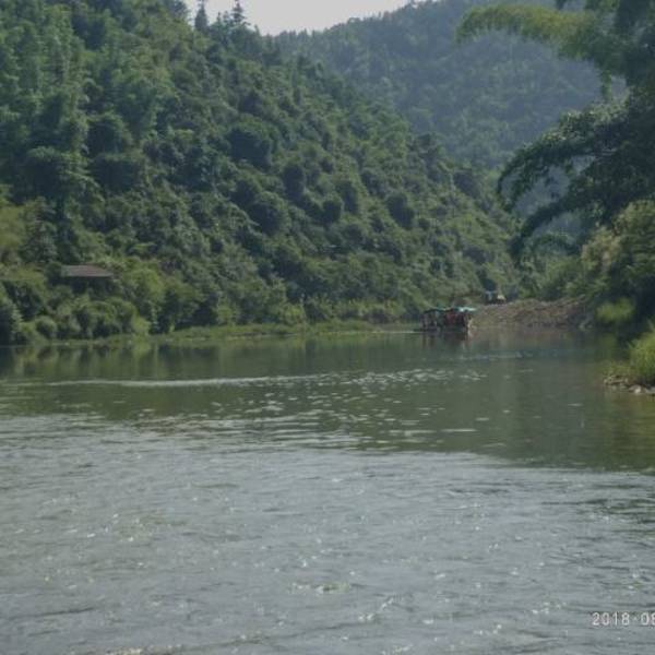 两岸风景非常秀丽,青山绿水好风光啊!水清见底!很惬意的漂流!