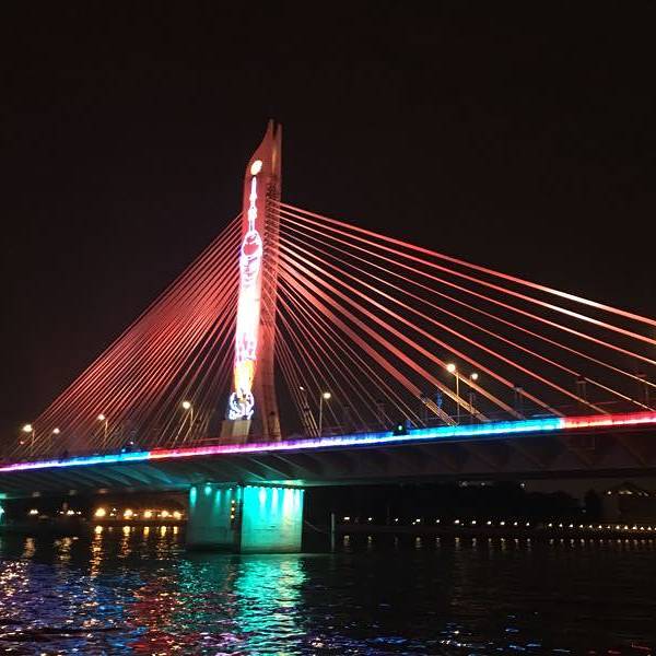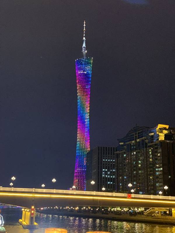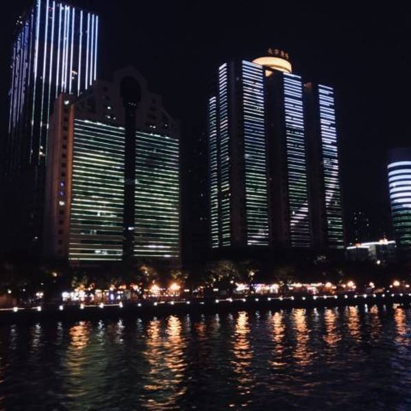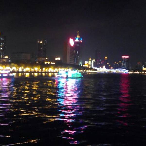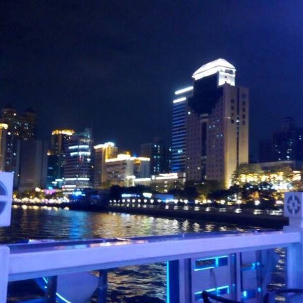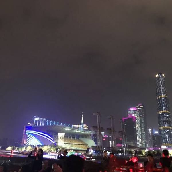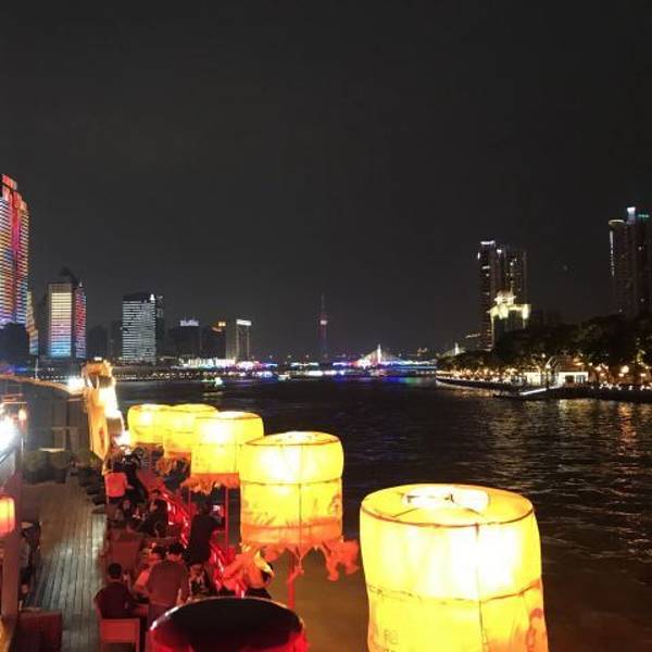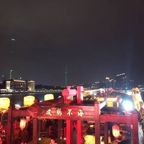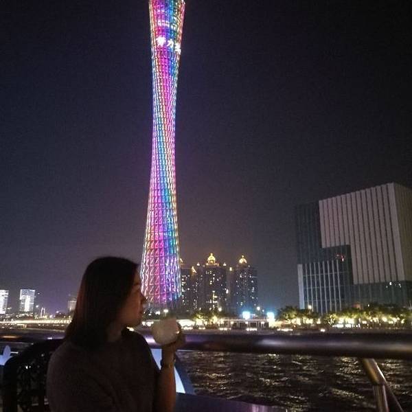 坐在船头,很享受广州的夜景。不过下次就不在上面喝茶了,感觉挺贵的。