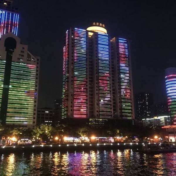 江风吹的非常的舒服,夜景非常的美,珠江新城那一带有点震撼。推荐从天字码头上的船,买的是三楼船顶的票,有送一杯红茶和水果。江风吹的非常的舒服,夜景非常的美,珠江新城那一带有点震撼。推荐。