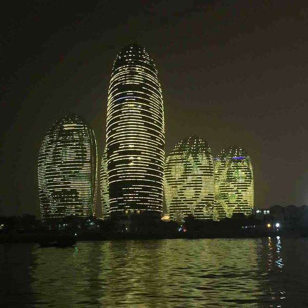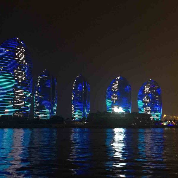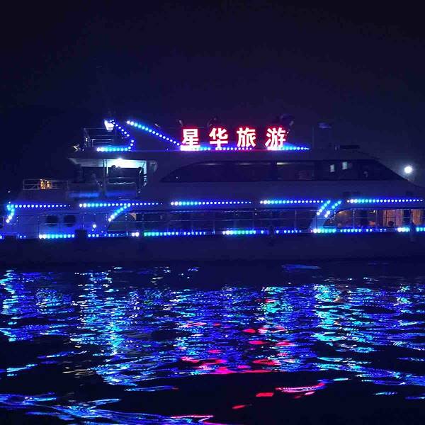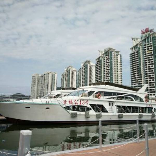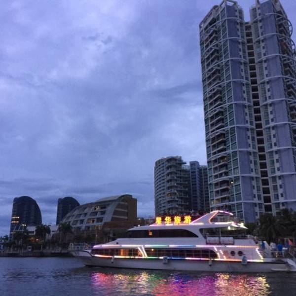 夜游三亚湾,梦幻凤凰岛。从历史悠久的三亚港出发,沿途仰望鹿回头,远眺两岸渔光灯火,感受梦幻凤凰岛,遥望神秘的东、西玳瑁岛。乘豪华游船,喝啤酒,尝美食,听涛声,看夜景,玩游戏,展歌喉,今夜的三亚湾将留下您独特的身影,您也将会把今夜的三亚湾永存在记忆里。 三亚湾是比较悠长的海湾,有“椰梦长廊”之称处在三亚城区西北面,东枕鹿回头山,西靠天涯海角。远处是两座小岛东瑁洲岛、西瑁洲岛,形似趴在海上的两只大龟。这使辽阔的大海不显得寂寞。也给远海捕鱼的渔民心中有了着落。回望岸边,满是色彩明快的南洋风格的高档住宅小区、高档别墅区、高档酒店度假区,在婆娑的椰影辉映下,风情独具让人心旌摇荡。乘坐游轮游览三亚湾夜景,夜观“椰梦长廊”,在徐徐凉风中充分领略三亚美丽夜景!