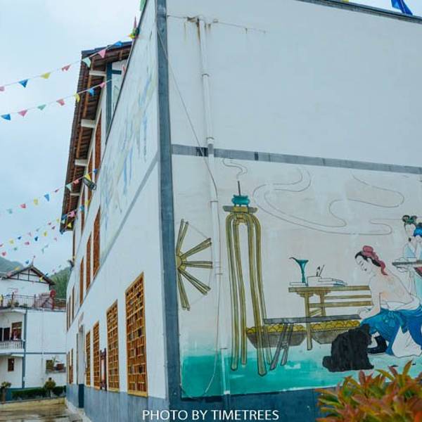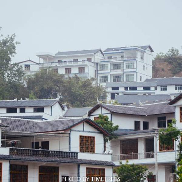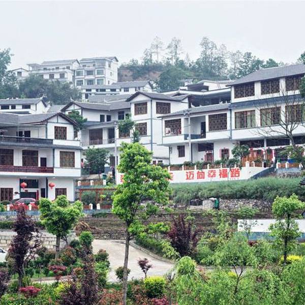 桃子村位于国家风景名胜区、5A级旅游景区龙宫核心区域,依青山环抱、绿水围绕,青瓦白墙的黔北民居掩映在树荫之间,房前屋后山花烂漫。