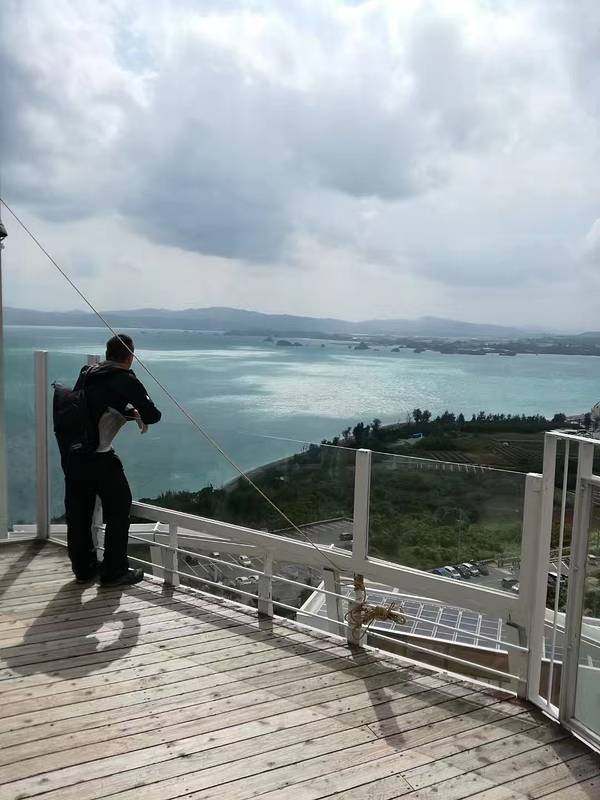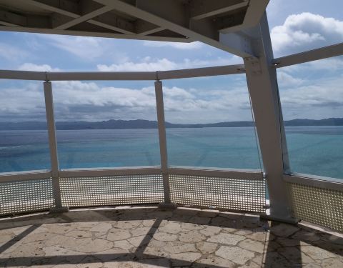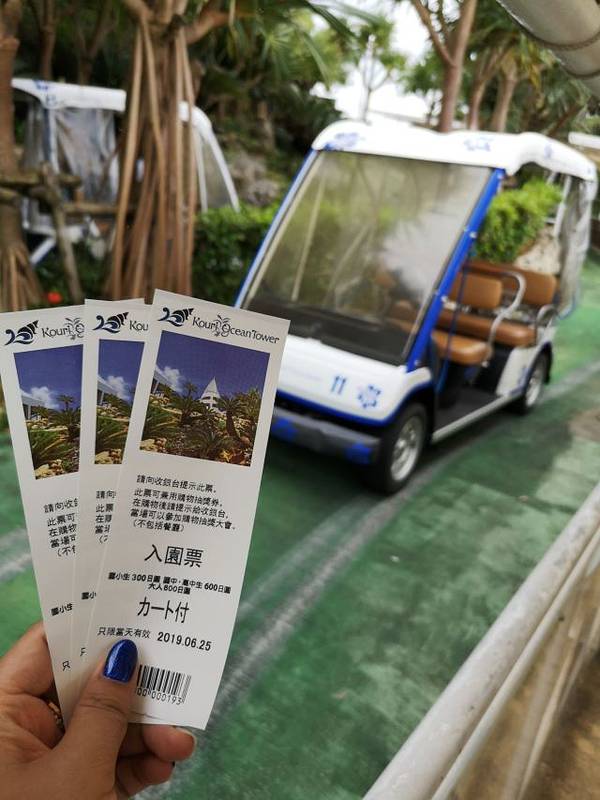穿过古宇利大桥,到达古宇利岛的展望塔「古宇利海洋塔」。首先登上类似高尔夫球车的自动车,带我们到塔上穿过古宇利大桥,到达古宇利岛的展望塔「古宇利海洋塔」。首先登上类似高尔夫球车的自动车,带我们到塔上。经过贝壳博物馆和纪念品商店,就是3层楼高,室内和室外,无敌180度惊人海景。
