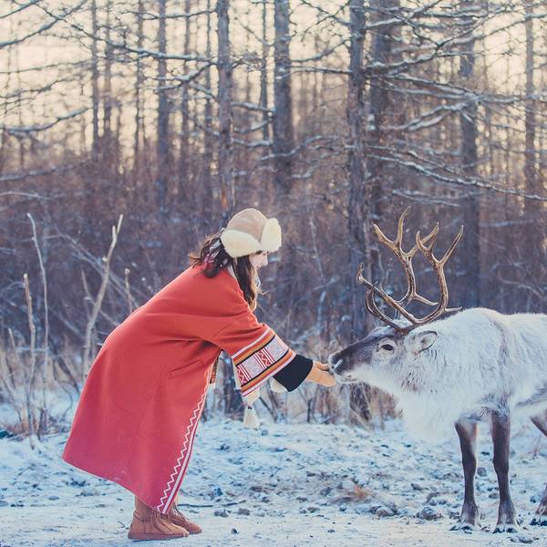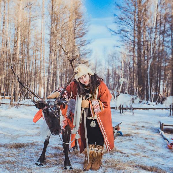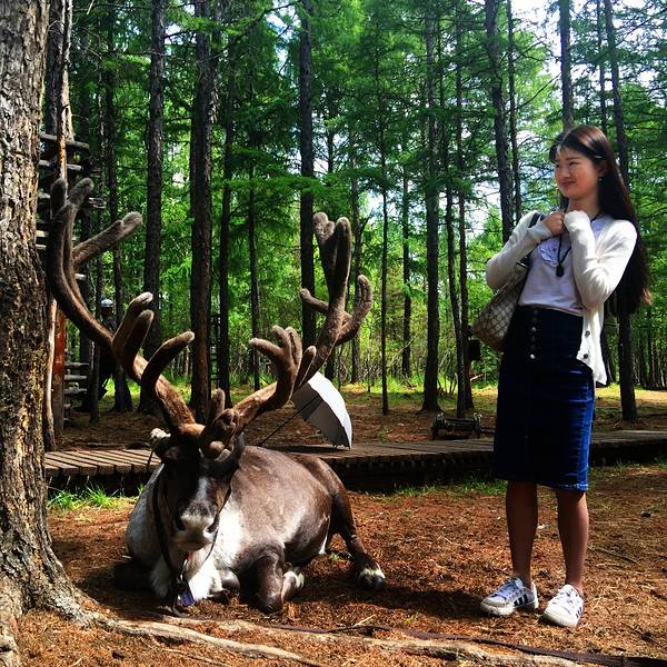 敖鲁古雅驯鹿之乡在呼伦贝尔最北部的根河市满归镇以北约17公里处,有一处以狩猎和放养驯鹿为主的小镇,这是一处位于大兴安岭森林中的鄂温克民族乡。各种植物除高大树木之外有几百种,各种动物几十种,不仅有观赏价值,而且有经济价值。大兴安岭天上的飞禽、地上的走兽、水中的游鱼成为他们的衣食之源。在这山高林密、岭秀水清的特殊地理环境中,鄂温克猎民饲养着在中国其他地方早已消失的驯鹿,从事着奇特的渔猎生产,信奉着古老的宗教——萨满教,在与各兄弟民族广泛的接触,频繁交往中,创造和发展了我国又一种文化——驯鹿文化。这里几乎家家户户都放养驯鹿,走在小镇的街巷上,不时可以看到拉着雪橇急驰而过的驯鹿,这种动物身躯强健,以白色和褐色最为多见,生性耐寒,很适合在高寒地区生活。