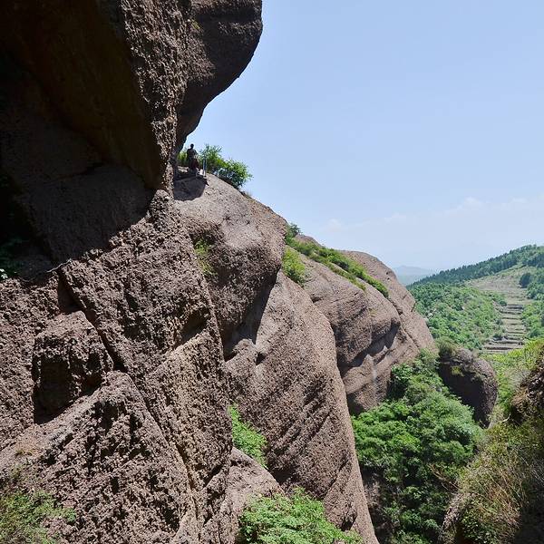 就这么一路走一路玩,过了很多栈道石缝,周围的石壁明显泛红,应该是丹霞地貌吧