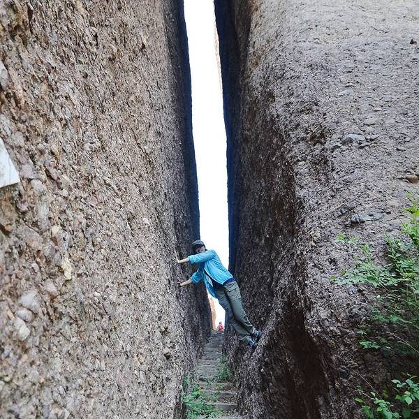 端午假期去的,走的小路很有挑战性,路都被野草和树枝占满了,需要小木棍开道,走到一线天很震撼,拍完照走出去是一个大石头平台,风景特别好看,不过比较险小朋友需要注意安全,下过雨山上还有水流下来。