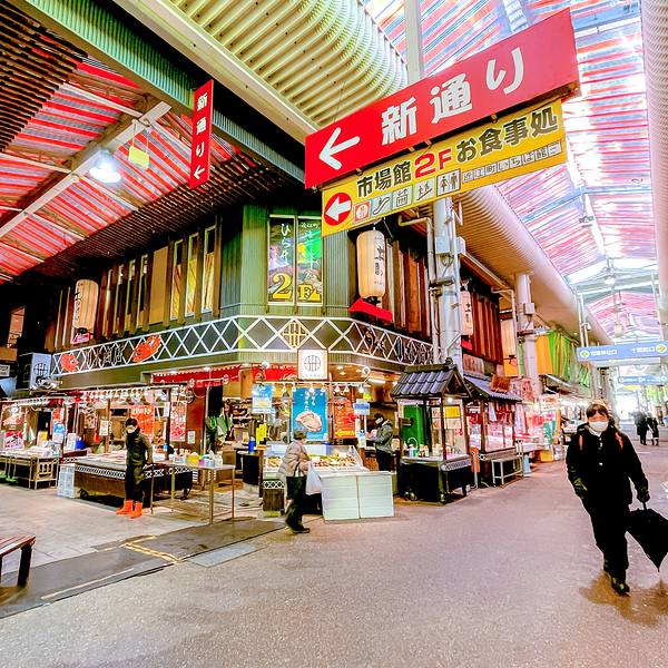 近江町市场位于日本石川县金泽市,是一个历史悠久的市场。市场以其新鲜的海鲜和多样的农产品而被游客熟知,是体验当地饮食文化的好地点。游客可以在这里找到各种新鲜的鱼类、螃蟹和贝类,许多摊位还提供即食服务,让游客品尝到新鲜的海味。 除了海鲜,市场内还有丰富的水果、蔬菜和传统日式小吃。这里的寿司店和小餐馆提供地道的金泽风味,尤其是使用当地食材制作的料理,深受游客喜爱。市场的氛围热闹而友好,摊主们乐于与游客交流,介绍他们的产品。建议游客早晨前往,以便看到市场繁忙的时刻,并享受新鲜的食材。市场内的通道较为狭窄,建议轻装简行。