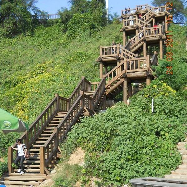 海贝广场位于大连经济技术开发区,临近渤海湾,利用突出的一块位于海边的空地建成的广场,上边供人走的梯子迂回曲折,是用木头制成,站在护拦外可以近距离的看到浅海区。
