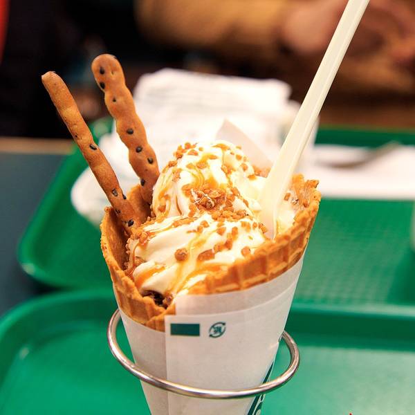 小丑汉堡在北海道有多家分店。北海道的牛乳特别好,于是冰淇淋口味也都不错。会贴心的放在支架上端上来