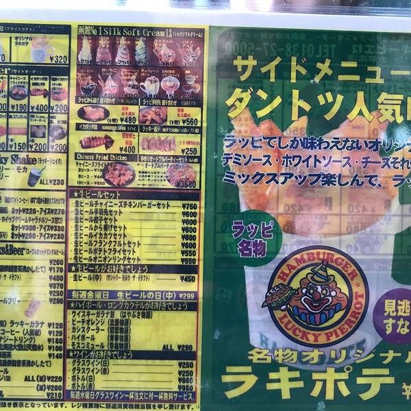 知名的中式汉堡店,北海道人气火爆的美食品牌。有一种说法是:没来吃过幸运小丑汉堡就等于没来过函馆。幸运小丑是函馆地区独创的汉堡店,据说连日本皇室的公主也曾亲自到此品尝并赞美。有人称它为日本的麦当劳,但是味道比麦当劳要好一些,选择丰富,价格亲民,比较便宜。