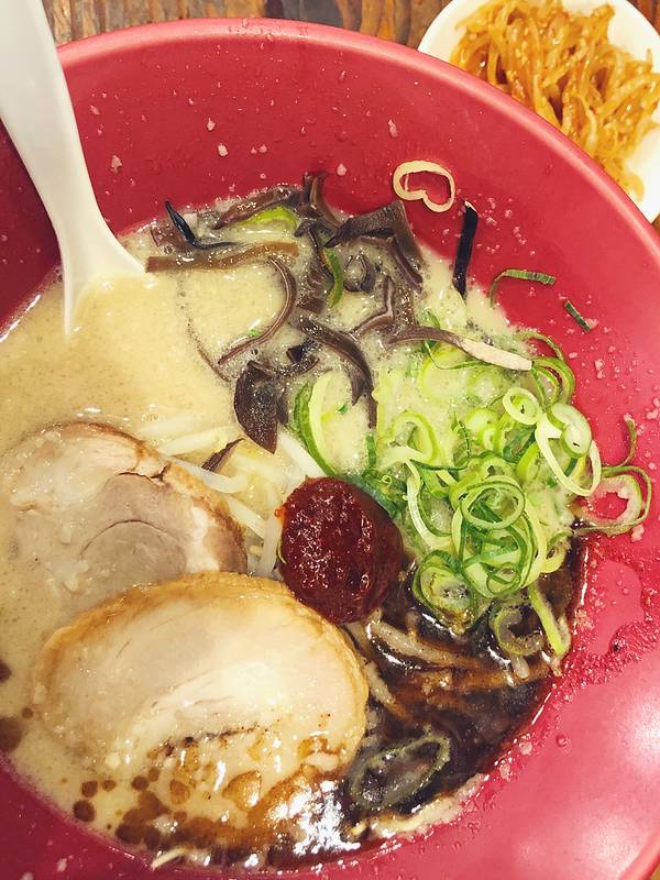 再次表扬酒店位置,楼下步行一分钟就是桃桃推荐我她爱吃的一风堂拉面。这次尝试了赤丸拉面(微辣),但是丝毫感觉不到赤丸的威力啊,追加了一份饺子,毕竟饺子拉面在日本算是绝配。但是总体下来呢,我觉得一风堂...