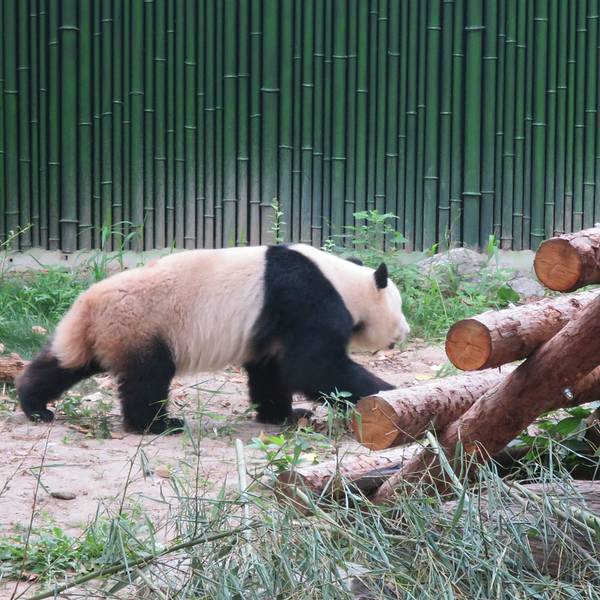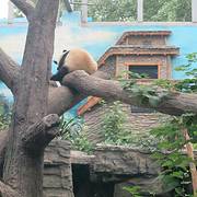 北京动物园旧熊猫馆系五十年代的建筑,1989年,新建设了北京大熊猫馆。新馆位于原熊猫馆东侧,北楼北侧的大门中轴线上。占地面积10000平方米;建筑面积1452平方米;室外运动场面积2000平方米。整个建筑以中国古典园林“拓朴”原理为哲学依据,以“太极图”为形式构图。造型呈竹笋状,十一对拱圈就像竹节。建筑主体为砼结构,后部为铝合金玻璃幕墙以网架支撑。东部及中部为折形,西部为弧形,造型既有统一又有变化,并与木模板脱模的砼墙衔接,一粗一细,一明一暗,相映成趣。三个室外运动场依地势自然起伏,并设有活动栖架供熊猫玩耍嬉戏。熊猫馆轴心外做有水池叠水,水顺墙而下、落槽而走、流入池中、循环往复。池中黑白卵石镶成的图案与建筑相呼应,池边一圈矮石柱与水池相切,上雕熊猫脚印,别有情趣。