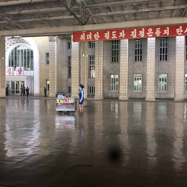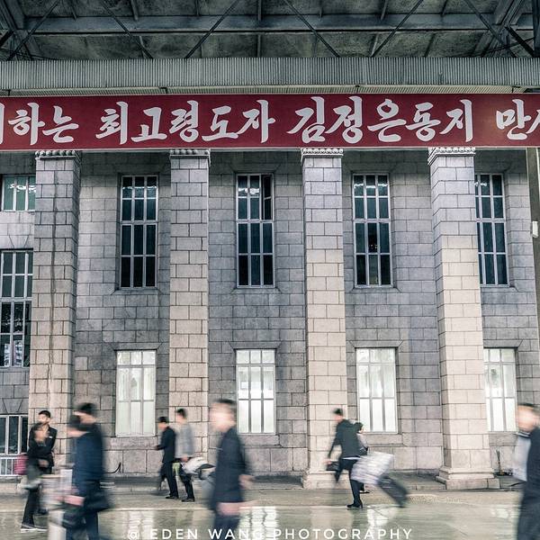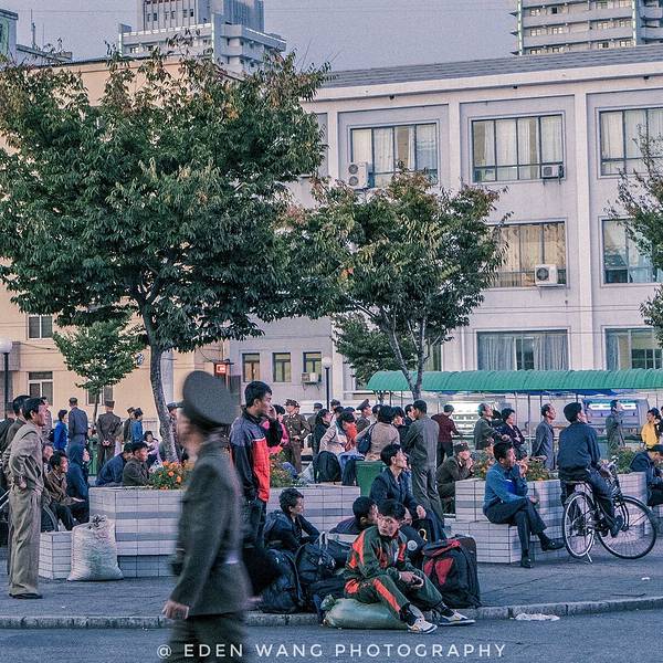 12:10AM安检过后5个小时的车程前往平壤。5:30PM到达平壤火车站 下火车开始,记住!!!在朝鲜拍照你是要跟导游抢时间的。 整趟行程下来我基本跟大部队是反着走的,他们进景点我在外面拍,他们从景点出来,我再进去拍。我们领队总是走过来意味深长的跟我说“别瞎拍,别瞎拍”。