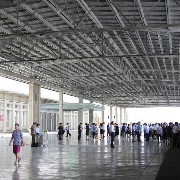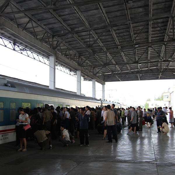 - 跟着导游和大家一起从一个小门进站,就特别的随意。平壤火车站和一般的火车站一样车水马龙。平壤火车站