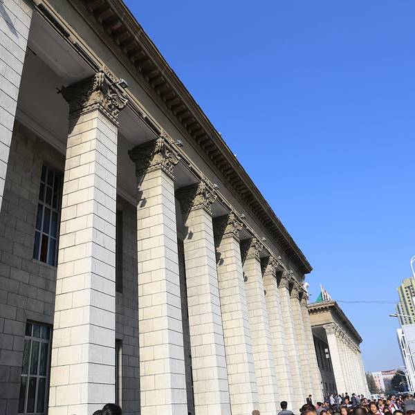 平壤火车站位于首都平壤市的繁华地带。我们从丹东上火车,乘坐北京到平壤的火车抵达平壤。平壤火车站外观古朴,风格简约。站前广场面积不大,有很多市民在看广场上的大屏幕播放的战争片。和平壤地铁相比,平壤火...
