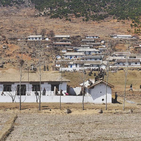 几乎是饿着肚子离开酒店的,最后一顿早餐安排在酒店的顶层,是个旋转餐厅,我去的不算太晚还在早餐时间范围内,但是餐厅已经基本没有吃的东西了,连稀饭都没有了,就剩一点蔬菜和两块鱼,就这样饿着肚子匆忙离开...几乎是饿着肚子离开酒店的,最后一顿早餐安排在酒店的顶层,是个旋转餐厅,我去的不算太晚还在早餐时间范围内,但是餐厅已经基本没有吃的东西了,连稀饭都没有了,就剩一点蔬菜和两块鱼,就这样饿着肚子匆忙离开酒店,在一个物质严重匮乏的国度,尽管我们每天开心地吃着每天他们努力提供的不一样的伙食,但我们还是能明显感受到他们的努力和因匮乏导致的无奈。很心酸,更希望他们自己先吃饱吃好再来努力给外人展示。从 朝鲜 回来后我比以前更懂得珍惜和节俭大家凑合着看吧,我基本是站在一个位置朝着各个方向摁一张,没有时间也不敢多走动。这里给个小贴士:如果你选择火车的话,尽量到最后一节车厢,因为可以看到这样的画面,有没有觉得很美,拿个脚架拍个延时都是超美的哦。仅仅四天时天,田野开始发绿,蓝天白云下的这片农田已露生机。大片的农田和时不时会出现的延绵的丘陵在大自然光影的点缀下,显得异常的漂亮,很像我国云贵川地区,来到 朝鲜 导游一直不让我们拍农村、农民,他们觉得农村比较破旧,农民因为要干农活的关系身上比较脏,所以不让我们拍了带出去,那种强烈示好的心态真累啊。这张是原图,没有二次构图,这几个人坐的离火车很近。