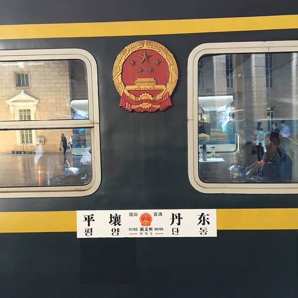平壤火车站和一般的火车站一样车水马龙跟着导游和大家一起从一个小门进站,就特别的随意火车已经进站,大家可以陆续的上车,车要10:10分才发车。大家抓紧时间在小推车上看看还有什么要买的上车后看到有人下车拍照,乃么我也控制不住自己,赶紧去拍照平壤火车站前半部的车厢送行的人更佳多,挤满了人。。。这辆车除了到中国,还有一部分的车是到新义州的,中间也有停站的我们这边的车厢是去丹东的和平壤说再见啦~火车站的标语准时开车,启程回大中国咯~