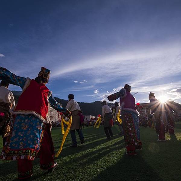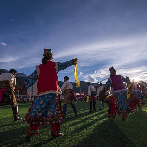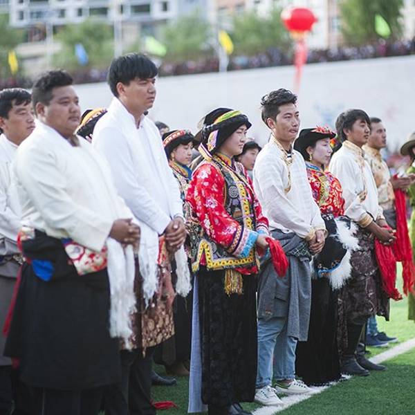 缤纷的民族服装在夕阳的映衬下分外鲜艳而夺目。载歌载舞的广场据闻为了开场舞,大家都把自己的看家饰品都戴出来了,不要怀疑这些饰品,它们可都是真的...偶遇迭部的活动,大运动场上都聚满了来自甘南,迭部的人们。