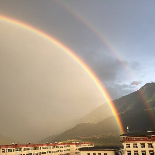 正在和小伙伴调侃,然后出彩虹了~这次是双彩虹~愉快的用手机记录下来发到朋友圈求点赞