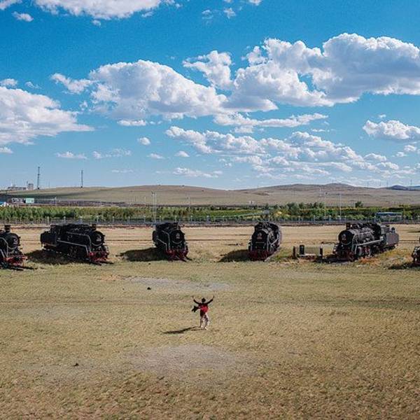 扎赉(lai)诺尔在距离满洲里20km左右的地方,这里其实是一个矿区,城市里的大部分人都在矿里上班。这里甚至有曾经矿上用的通勤列车。