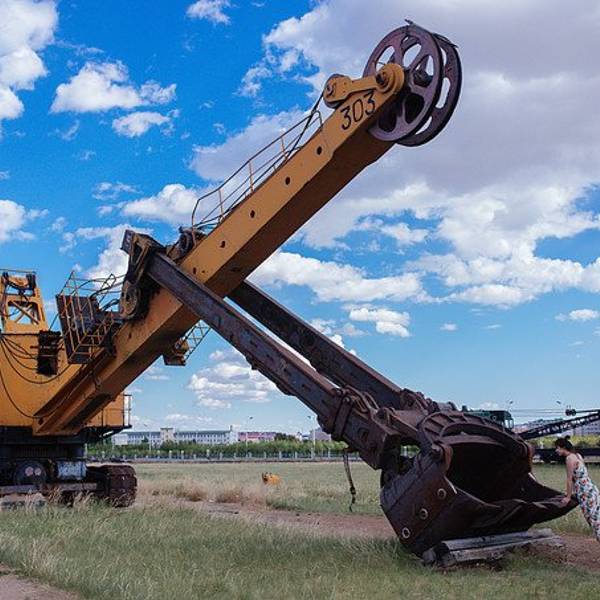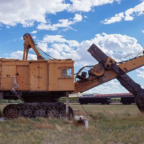 累了一辈子,是该好好休息一下。列车的内部已经陈旧不堪。薛晴似乎正准备从车厢里跳下来。停放在草地上的大型采矿机械。
