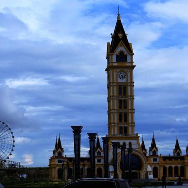 他正好要去呼伦湖附近拍星空,我们觉得这是一个大好的机会,所以顺便『蹭车』夜游。满洲里的套娃广场,真的有一个非常大的套娃,听说这个东西未来是一个大酒店。