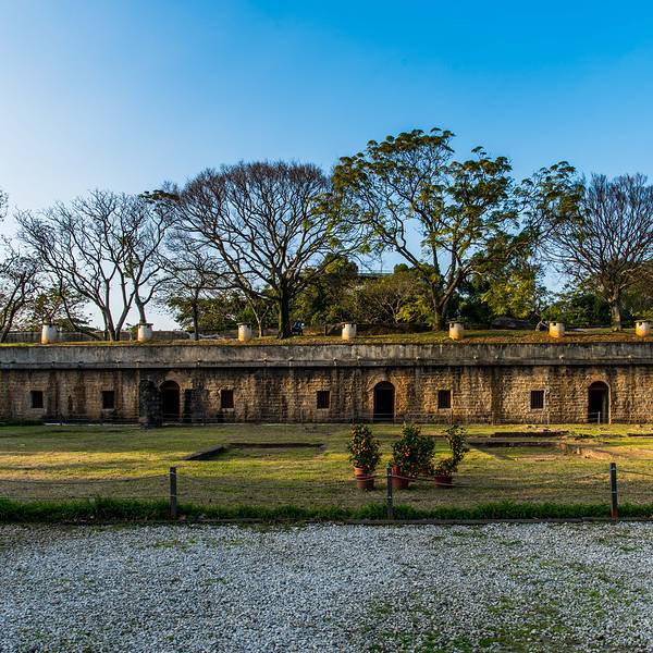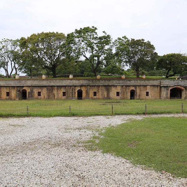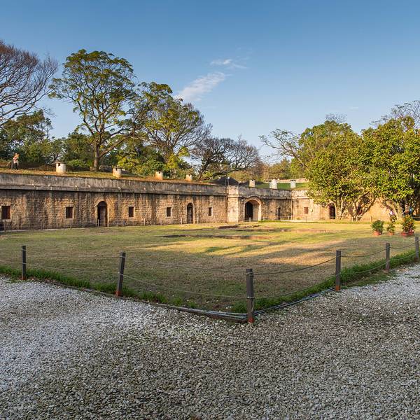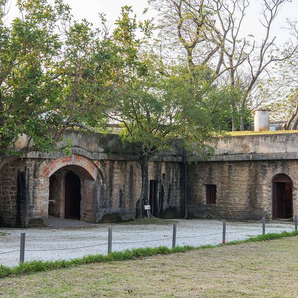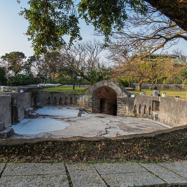 搭乘捷运淡水线至【淡水】站,转乘公交车836号或红26在【沪尾炮台】站下车步行即可。