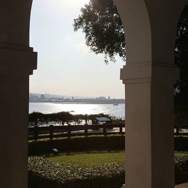 从回廊拱圈处看风景。免费参观。小白宫是清朝时期淡水海关税务司官邸,是非常漂亮的别墅式建筑。大门外小白宫是清朝时期淡水海关税务司官邸,是非常漂亮的别墅式建筑。