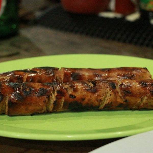 鸡肉沙爹,网上推荐的,烤的有点糊,不过肉质还是很嫩很香很好吃。烤香肠也是很香脆,很好吃