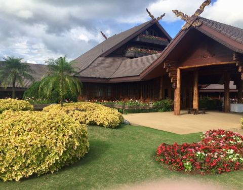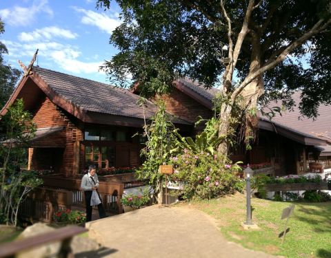 这个皇室的行宫具有非常浓郁的泰北的建筑风格,基本上就是木质结构的房屋,但是肯定是很精巧的,而且...这个皇室的行宫具有非常浓郁的泰北的建筑风格,基本上就是木质结构的房屋,但是肯定是很精巧的,而且也显得挺庄重的,环境挺漂亮啊。
