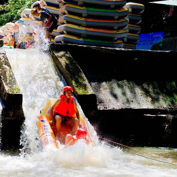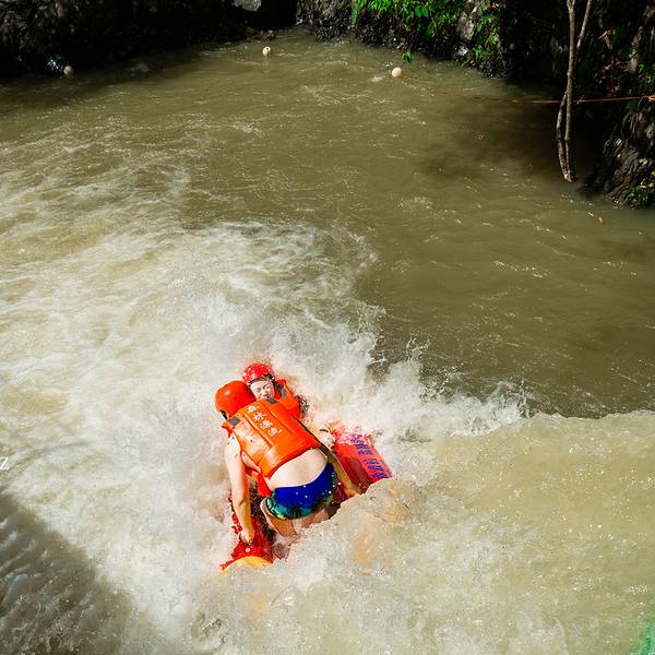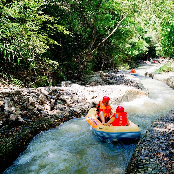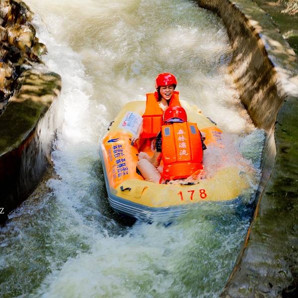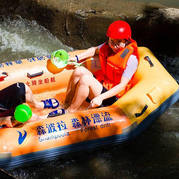 以前的“羊角山森林漂流”重新打造,7月份开漂,在售票处坐中巴半小时到达起漂点,头盔、救生衣都是...森林漂流源头在树荫深处,整个漂流河道隐藏在原始森林中,森林覆盖率达90%以上,几乎是“不见天日”,又名“地窟漂流”。漂流所在的三印谷和九曲河,以“幽、野、险、奇、情”著称,有“一谷一新景、九曲藏千画”...森林漂流源头在树荫深处,整个漂流河道隐藏在原始森林中,森林覆盖率达90%以上,几乎是“不见天日”,又名“地窟漂流”。漂流所在的三印谷和九曲河,以“幽、野、险、奇、情”著称,有“一谷一新景、九曲藏千画”的美称。峡谷空气负离子含量达每立方米12亿个,是华南地区负离子含量较高的地方之一。漂流河段全长5公里,有奔驰漂、探险漂、瀑布漂、徊旋漂、勇士漂、逍遥漂六大漂流模式,19处至激的漂流劲爆高潮点,落差143米沿途急流险滩多处,全程漂流需要90分钟。最惊险处“尖叫一线天”,落差达10米,两边全是直耸入云的山石,仅能容一条皮划艇通过。飘落的瞬间,小艇在湍急的水流中冲出,接二连三的急流,让人与小艇在激流中跳跃,一路上急流四射,巨大的水浪从小艇两侧铺天盖地卷过来,整个人没入水中,屏息闭气,唯恐一呼吸水流便涌入鼻腔;短短一瞬,人又从水中凸现出来。以前的“羊角山森林漂流”重新打造,7月份开漂,在售票处坐中巴半小时到达起漂点,头盔、救生衣都是新购置的,全程河道较窄,缓冲区窄短,没有大规模聚集的地方,打不起水仗,有些位置会卡艇。大量的落差位,艇直插入水。手机必须要用防水袋拴紧,所有饰品等不能带,眼镜要用眼镜绳,可以的话尽量别带,不能穿拖鞋,会飞脚,可以穿溯溪鞋,穿紧不易掉。 展开