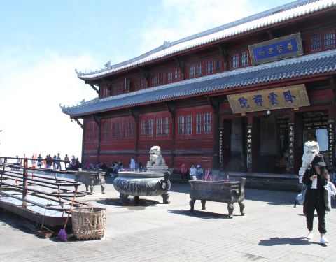 禅院在峨眉山的最高峰,从索道下来再步行很短的一段距离即可抵达。此禅院周围是理想的观赏峨眉山云海的地方。禅院的建筑部分是经过整修的。