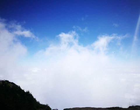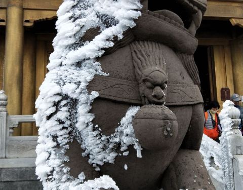在峨眉山顶俯瞰云海,卧云禅院果然是在云里啊!浓雾缭绕着大佛,站在舍身崖边上却不见悬崖。如果不是冻得发抖,我以为到了仙境。